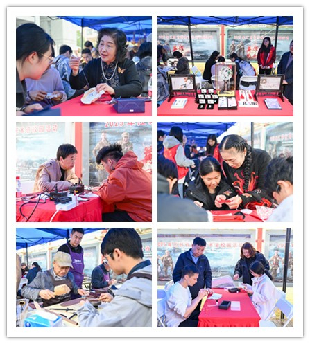 活动现场经过精心规划,将非遗瑰宝集中陈列,有苏绣(无锡精微绣)、制扇技艺、徐州香包、宜兴紫砂陶制作技艺、南京金箔锻制技艺、脂粉制作技艺(谢馥春脂粉制作技艺)、金陵刻经印刷技艺、中医蜂针、金陵竹刻、南京面塑、老虎鞋等非遗项目。每个展位前,非遗传承人现场演示精湛技艺,指尖流转间,尽显千年匠心。师生们踊跃参与,或驻足聆听传承人讲解非遗背后的历史故事与文化内涵,或与传承人交流技艺细节,或亲手尝试制作非遗作品,在一针一线、一捏一塑中,真切感受非遗的独特魅力,沉浸式体验传统文化的博大精深。