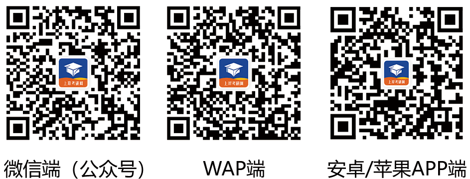 移动端使用方法:通过手机扫描下方二维码,关注微信公众号使用“上岸考研网”微信端,或下载APP使用。请注意:使用移动端时,须先通过校园网IP注册账户(该账户将自动升级为不限IP的移动端账户),并以该账户登录移动端。